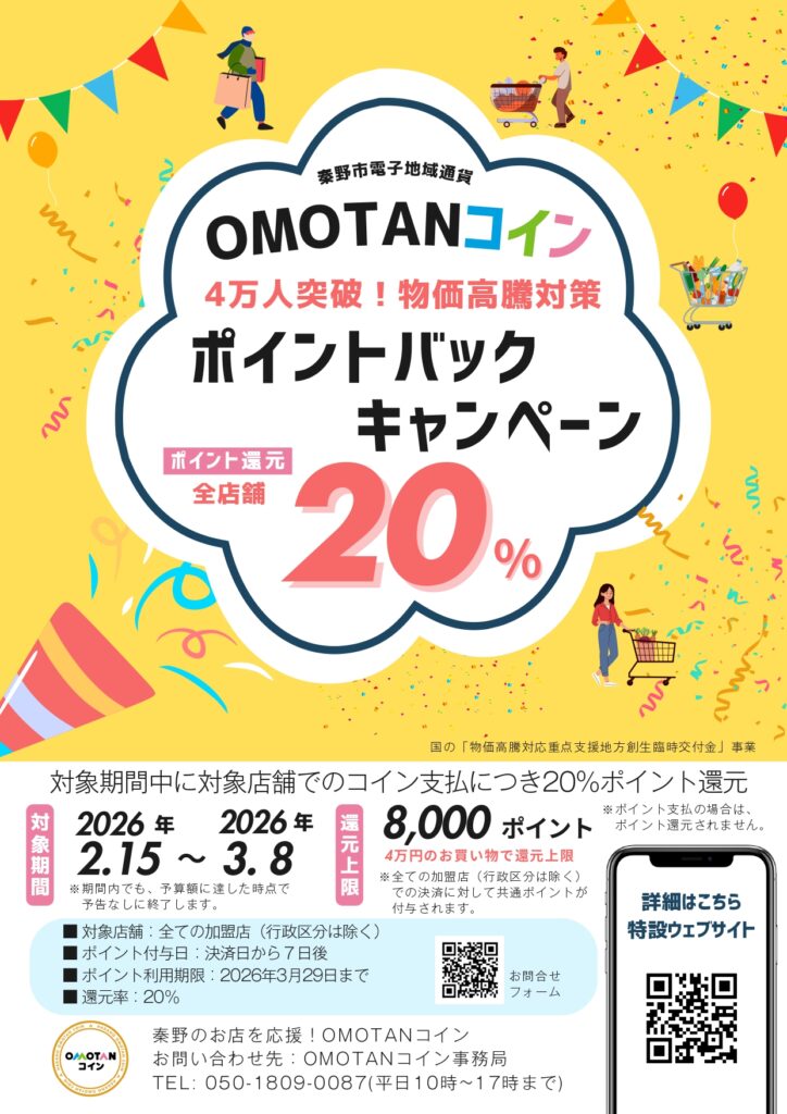 【お得】OMOTANコイン20%還元キャンペーン♪