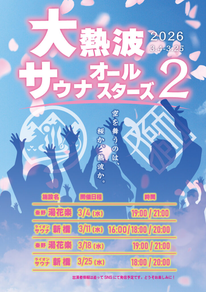 3月の毎週水曜日、秦野 湯花楽 ✖ ライオンサウナ新橋でアツき