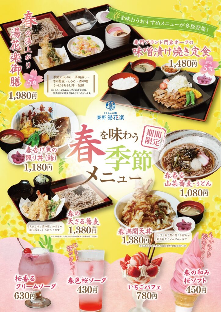 3月9日より、春のお食事メニューご提供♪ | ととのいの郷 秦野湯花楽