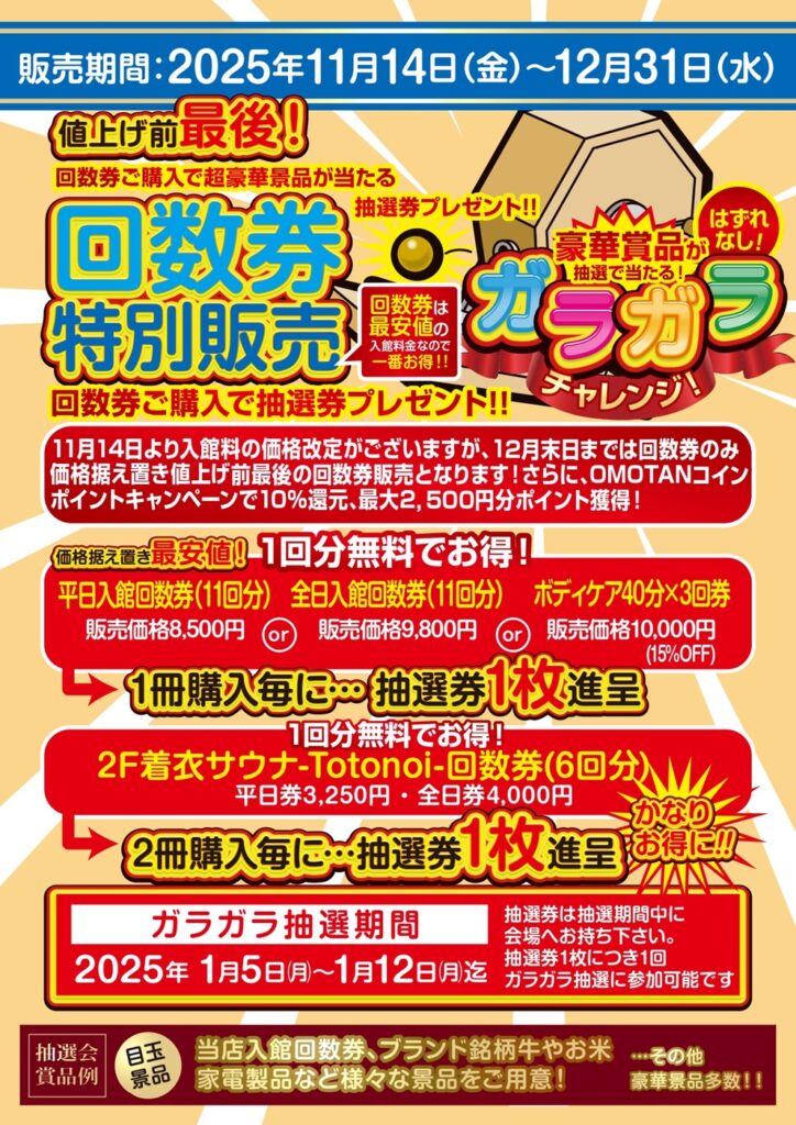 11月14日から12月31日まで、豪華景品が当たる回数券特別販売を行います!