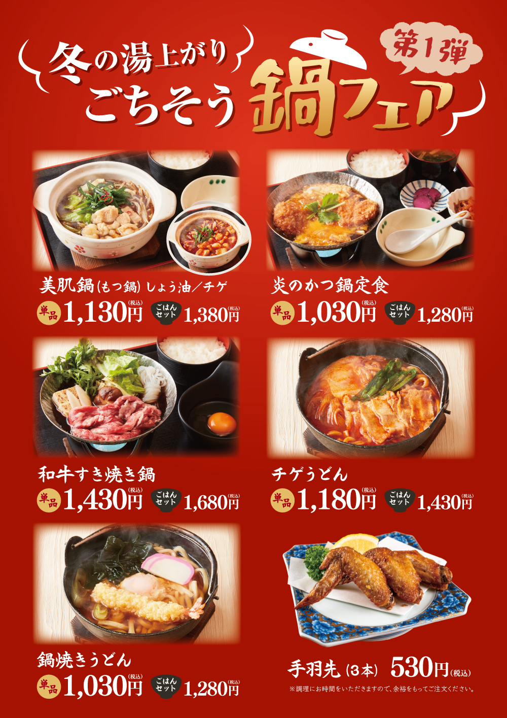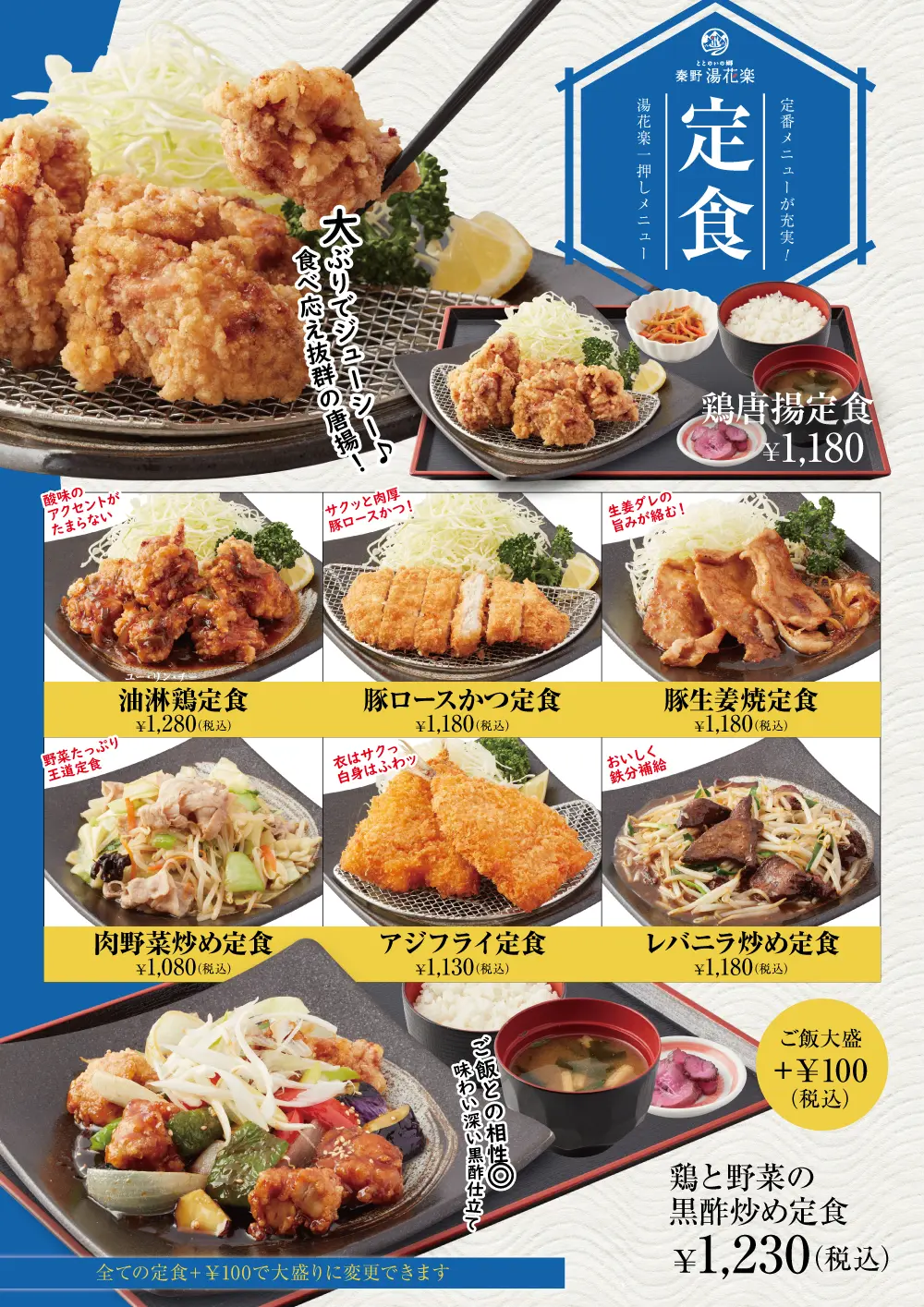 定食、丼もの、麺類、アイス、ドリンクなど、全部で100種類以上の充実メニューを取り揃えました。